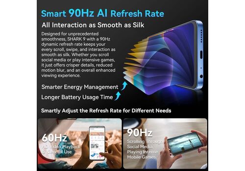 Με υψηλές ταχύτητες σύνδεσης, αξιόπιστο hardware και προηγμένα χαρακτηριστικά, το SHARK 9 είναι ο ιδανικός σύντροφος για επαγγελματική χρήση, ταξίδια και δημιουργία περιεχομένου.Διαθέτει κάμερα selfie 8MP, ultra-macro 2MP, και αισθητήρα βάθους 2MP, όλα εξοπλισμένα με ισχυρά AI εργαλεία επεξεργασίας για στιγμιαία βελτίωση φωτογραφιών με λίγα μόνο αγγίγματα. Σχεδιαστικά, συνδυάζει νεανική κομψότητα με λεπτό, ελαφρύ προφίλ, επίπεδη οθόνη με απαλές καμπύλες και υφή στο πίσω μέρος που θυμίζει κύματα του ωκεανού.Διατίθεται σε δύο μοναδικές αποχρώσεις: Starry Rock Black και Azure Wave Blue, φέρνοντας την κομψότητα του βυθού στα χέρια σας. Στο λογισμικό, ενσωματώνει την αναβαθμισμένη Doke OS 4.0 βασισμένη σε Android 14, προσφέροντας πιο έξυπνη, πιο cool και απόλυτα εξατομικευμένη εμπειρία.Στο εσωτερικό του, “τρέχει” τον 8πύρηνο επεξεργαστή 5G Unisoc T820, υποστηρίζοντας έως 24GB RAM, 256GB ROM και επέκταση έως 2TB, προσφέροντας απρόσκοπτο multitasking. Η μπαταρία 5000mAh με ταχεία φόρτιση 18W, ο έξυπνος ρυθμός ανανέωσης 90Hz, καθώς και τα διπλά Smart-PA ηχεία, εξασφαλίζουν πλήρη εμπειρία πολυμέσων παντού.Υποστηρίζει 15 ζώνες 5G για μέγιστη κάλυψη δικτύου.Κάμερα 50MP με AI, Pixel Binning και Τεχνολογία Double Super PD