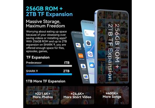 Μόλις 8.65mm πάχος, βάρος 200g και τετραπλής πλευράς επίπεδη σχεδίαση με κυματιστή υφή που προσφέρει premium μεταλλική αίσθηση. Το SHARK 9 5G δεν είναι απλά smartphone – είναι στυλιστική δήλωση.Doke OS 4.0: Πιο Έξυπνο, Πιο Προσωπικό, Πιο Cool