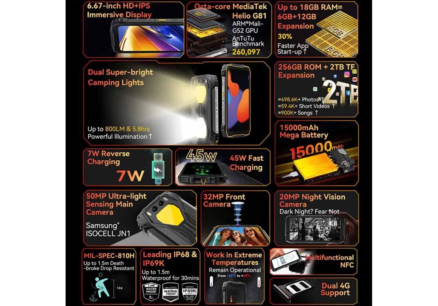 Το Blackview BV7300 προσφέρει έναν μοναδικό συνδυασμό απόδοσης, ανθεκτικότητας και σύγχρονων χαρακτηριστικών. Ιδανικό για χρήστες που αναζητούν αξιοπιστία και λειτουργικότητα, αυτό το smartphone είναι κατασκευασμένο για να ανταπεξέρχεται στις καθημερινές ανάγκες, ακόμα και στις πιο απαιτητικές συνθήκες.