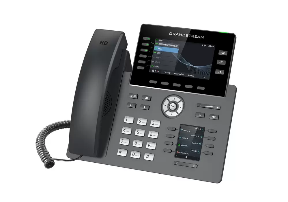 Το GRP2616 της Grandstream είναι ένα ισχυρό επαγγελματικό IP phone, που υποστηρίζει έως έξι λογαριασμούς SIP και τεχνολογία HD audio. Διαθέτει μεγάλη έγχρωμη οθόνη LCD 480x272 pixels με οπίσθιο φωτισμό, είσοδο USB και δύο θύρες Gigabit με ενσωματωμένο PoE. Προσφέρει πλήθος χαρακτηριστικών, διατηρώντας συγχρόνως μια ιδιαίτερα ελκυστική εμφάνιση. Ενσωματώνει Bluetooth, Wi-Fi 802.11 a/b/g/n/ac και υποστηρίζει IPv6, SRTP / HTTPS / TLS, 802.1x. Συγκεντρώνει όλες τις απαραίτητες λειτουργίες για ένα σύγχρονο εργασιακό περιβάλλον, όπως XML Browser, call park, call pickup, BLF, call forward, call transfer και 3-way conference. Αποτελεί ιδανική επιλογή για τον έλεγχο και τη διαχείριση μεγάλου όγκου κλήσεων, καθώς είναι εξοπλισμένο με μία δεύτερη οθόνη 2.4" (240x320), ικανή να υποστηρίξει έως και 48 ψηφιακά πλήκτρα BLF.