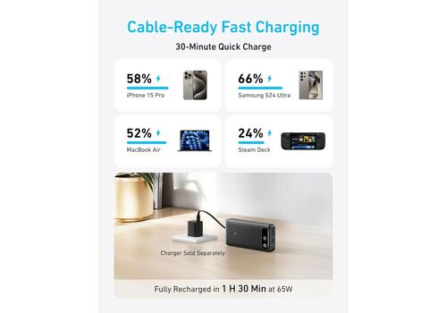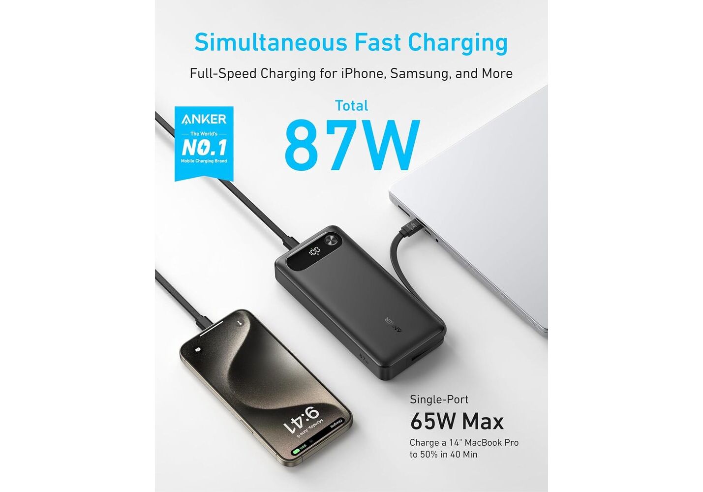 ANKER Powerbank 20,000mAh 87W Max Fast Charging Built-in USB-C Cable