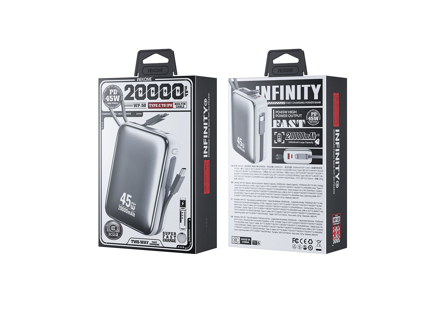 Το WEKOME WP-50 είναι ένα power bank χωρητικότητας 20000mAh, ιδανικό για αξιόπιστη και γρήγορη φόρτιση όπου κι αν βρίσκεστε.