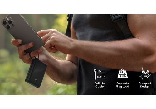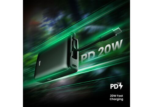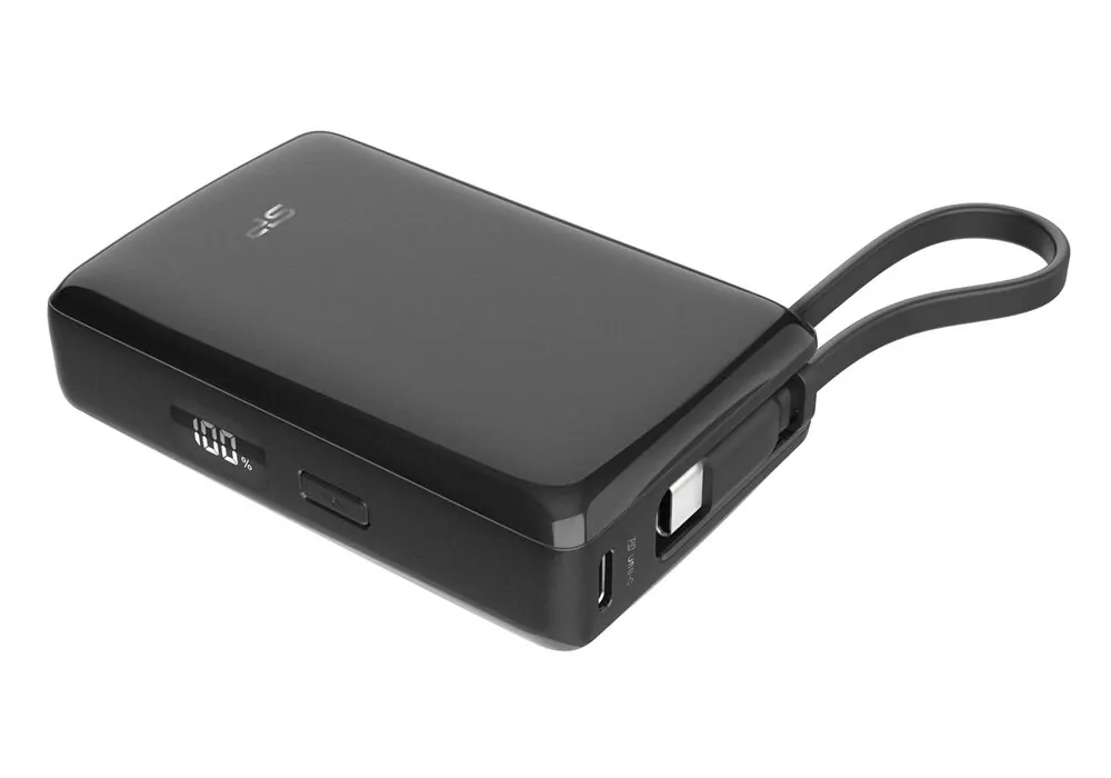 Η φόρτιση του power bank γίνεται μέσω της USB-C θύρας ή ενσωματωμένου καλωδίου και εξοπλίζεται με ψηφιακή οθόνη για την ένδειξη κατάστασης της μπαταρίας.