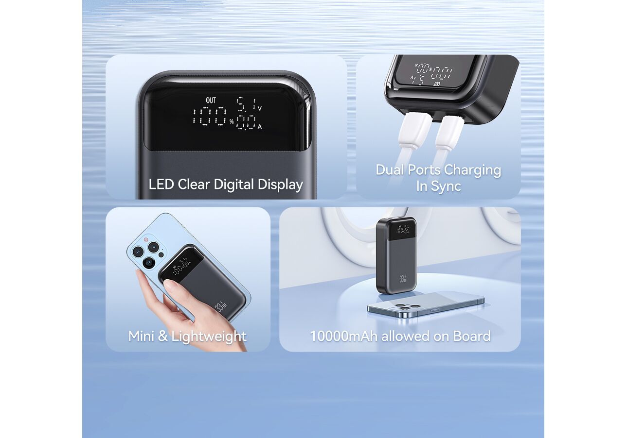 Η φόρτιση του power bank γίνεται μέσω της USB-C θύρας και εξοπλίζεται με οθόνη η οποία απεικονίζει την ένδειξη κατάστασης της μπαταρίας, τα volt και τα ampere.