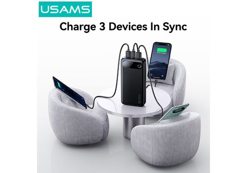 USAMS power bank CD251 με οθόνη, 3x θύρες εξόδου, 20000mAh, PD20W, λευκό