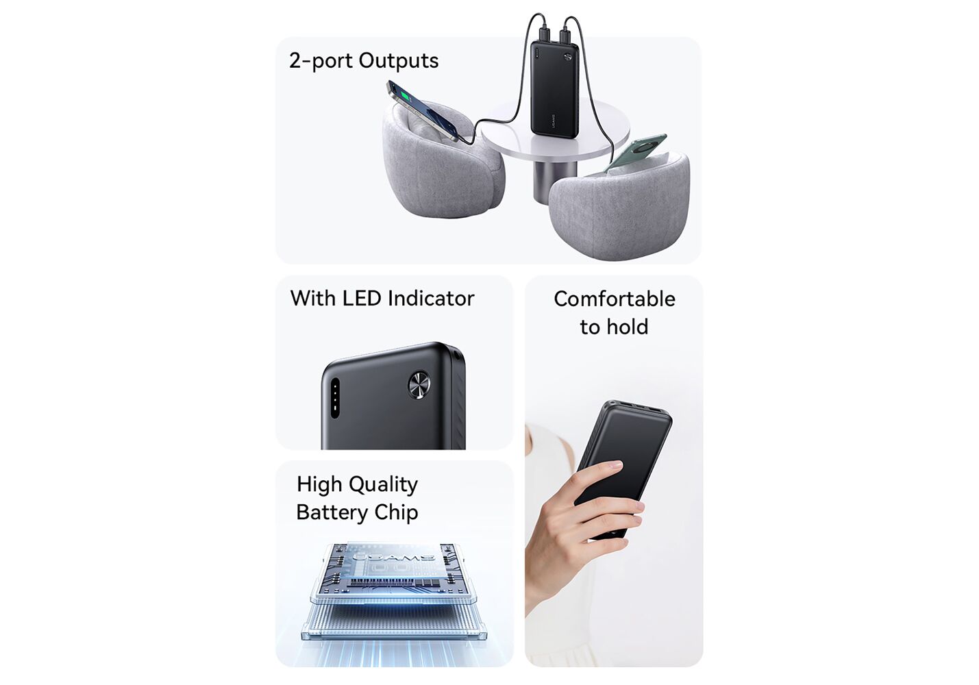 USAMS power bank CD253, 2x θύρες εξόδου, 10000mAh, 10W, λευκό