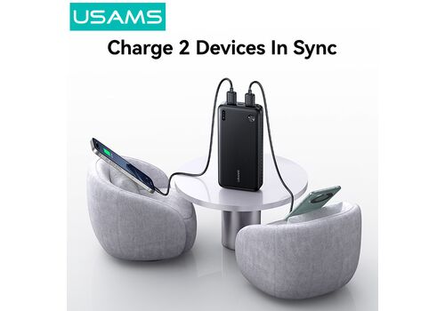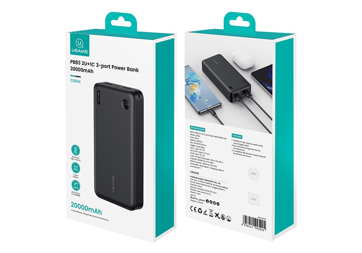 USAMS power bank CD254, 2x θύρες εξόδου, 20000mAh, 10W, μαύρο