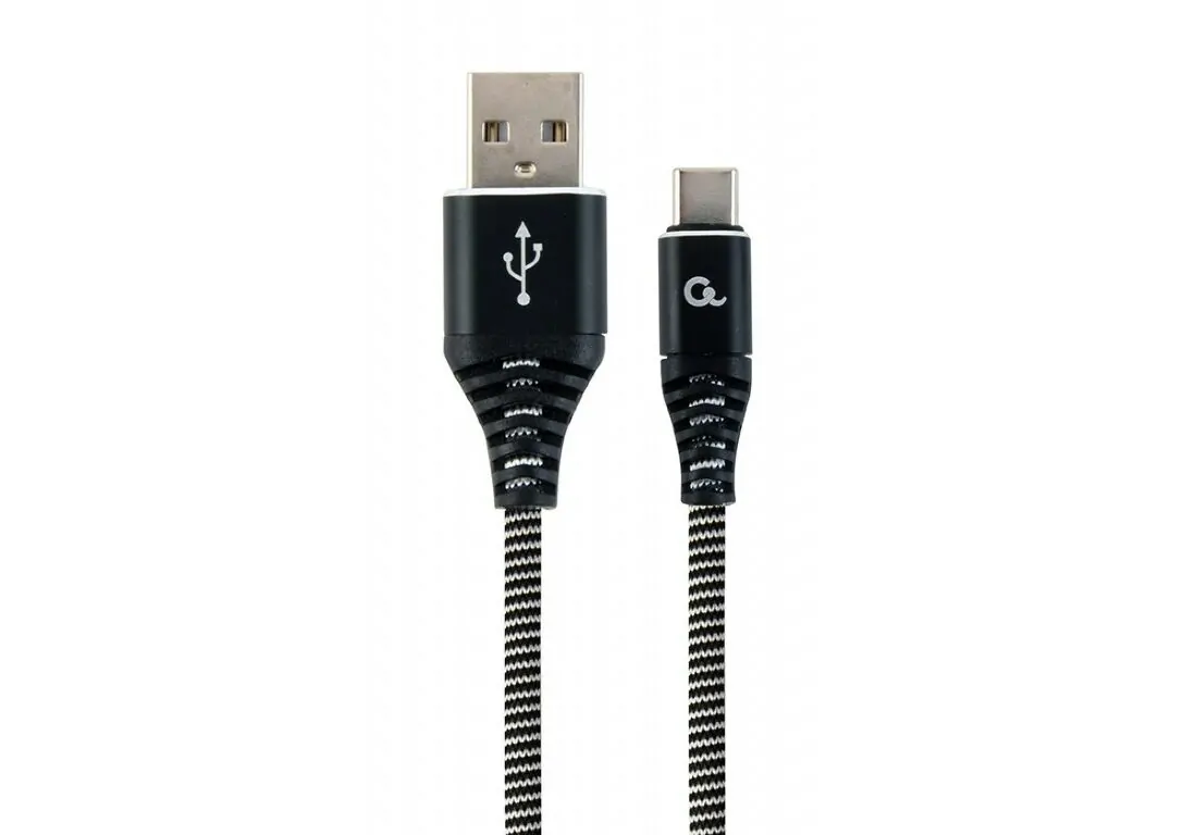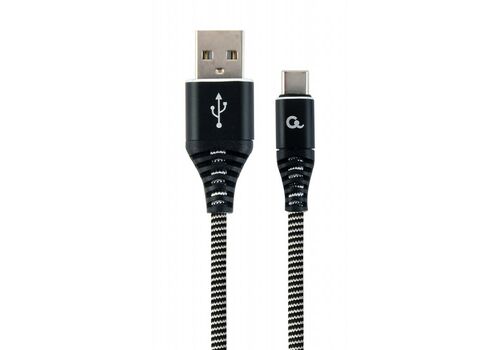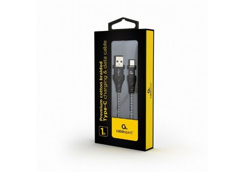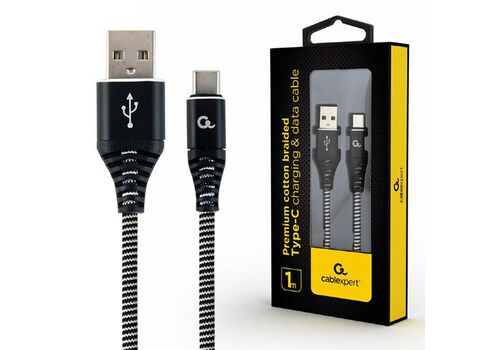 CABLEXPERT PREMIUM COTTON BRAIDED TYPE-C USB CHARGING AND DATA CABLE 1M BLACK/WHITE RETAIL PACK