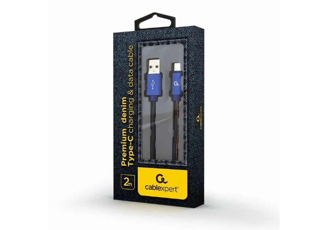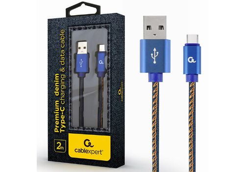 CABLEXPERT PREMIUM JEANS TYPE-C USB CABLE WITH METAL CONNECTORS 2M BLUE