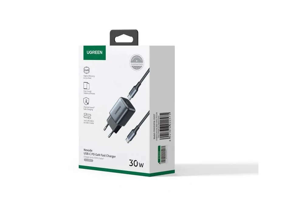 Charger GaN UGREEN CD319 30W PD Combo+Type C 60W cable 1m Space Gray 25257
