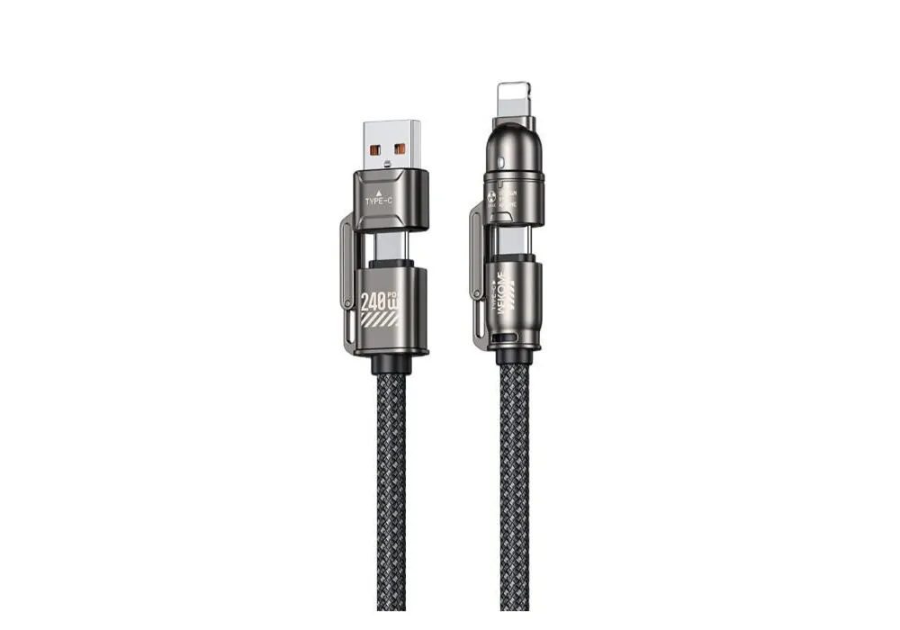 Το Καλώδιο Φόρτισης WK WDC-50 4 σε 1 PD 240W 1m είναι σχεδιασμένο για να σου προσφέρει απόλυτη ευκολία, ταχύτητα και αντοχή, καλύπτοντας κάθε σου ανάγκη φόρτισης και μεταφοράς δεδομένων.