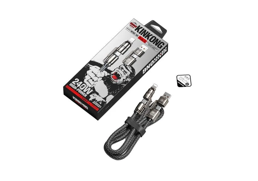 Αυτό που κάνει το WDC-50 να ξεχωρίζει είναι ο πολυλειτουργικός του σχεδιασμός. Διαθέτει τέσσερις διαφορετικές άκρες σύνδεσης, καθιστώντας το συμβατό με πληθώρα συσκευών, όπως smartphones, tablets, laptops, ακόμα και συσκευές που υποστηρίζουν Power Delivery (PD). Έτσι, δεν χρειάζεται να κουβαλάς μαζί σου διαφορετικά καλώδια – το WK WDC-50 τα έχει όλα σε ένα.