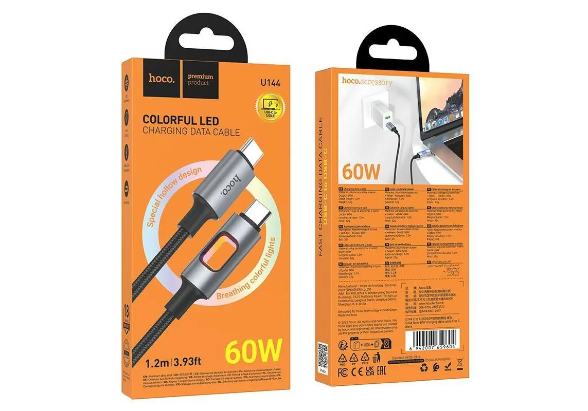 HOCO U144 ΚΑΛΩΔΙΟ ΦΟΡΤΙΣΗΣ TYPE-C TO TYPE-C, 1.2M, ΜΑΥΡΟ