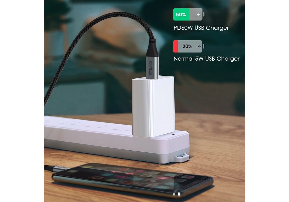 CABLETIME καλώδιο USB-C CMCM60W, 60W PD, 480Mbps, 1m, μαύρο