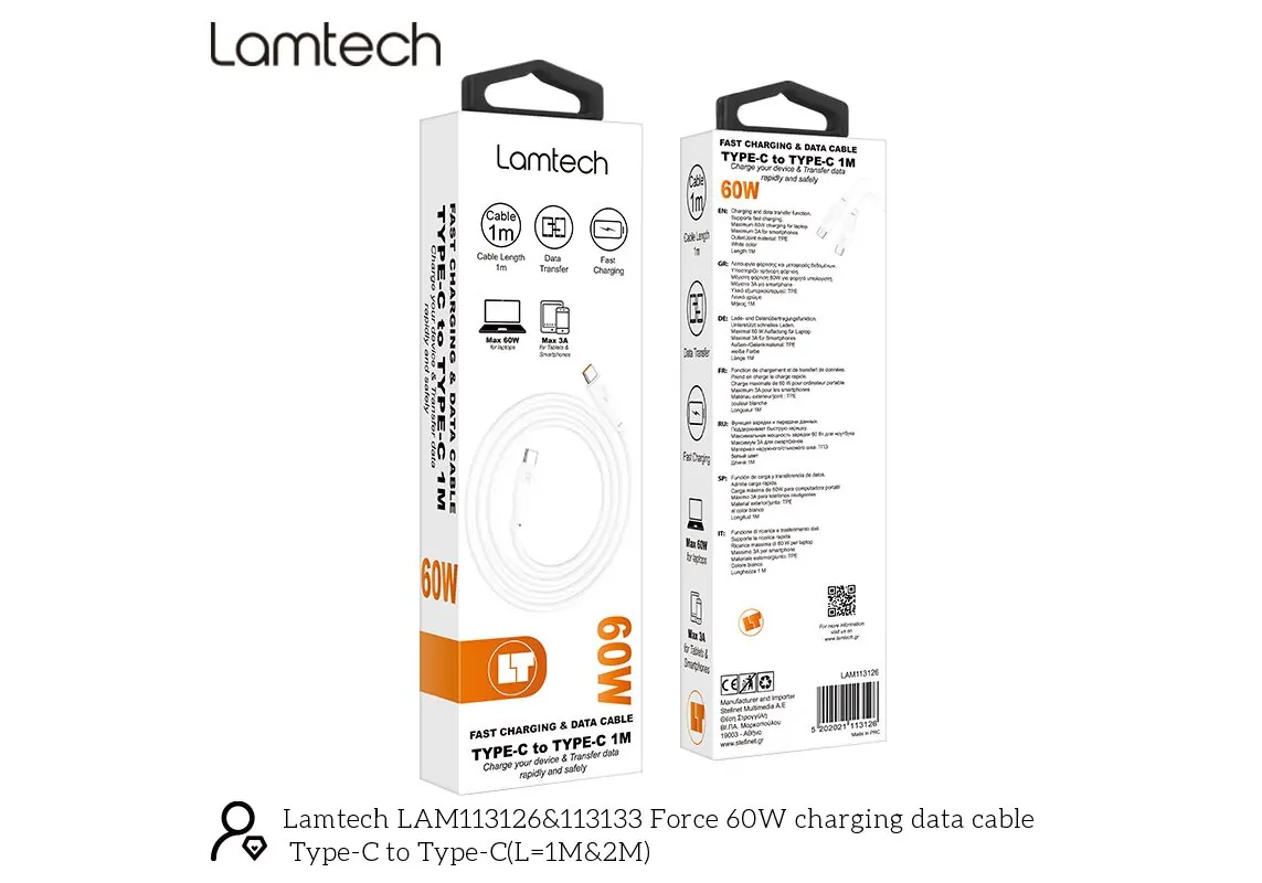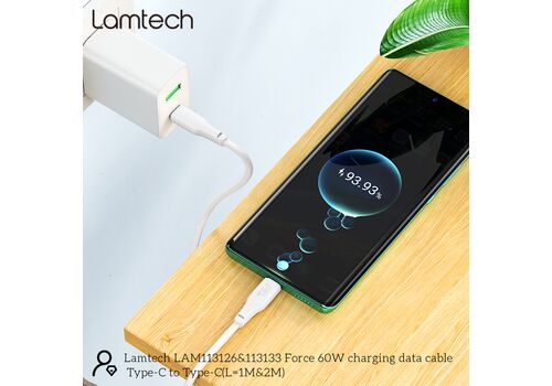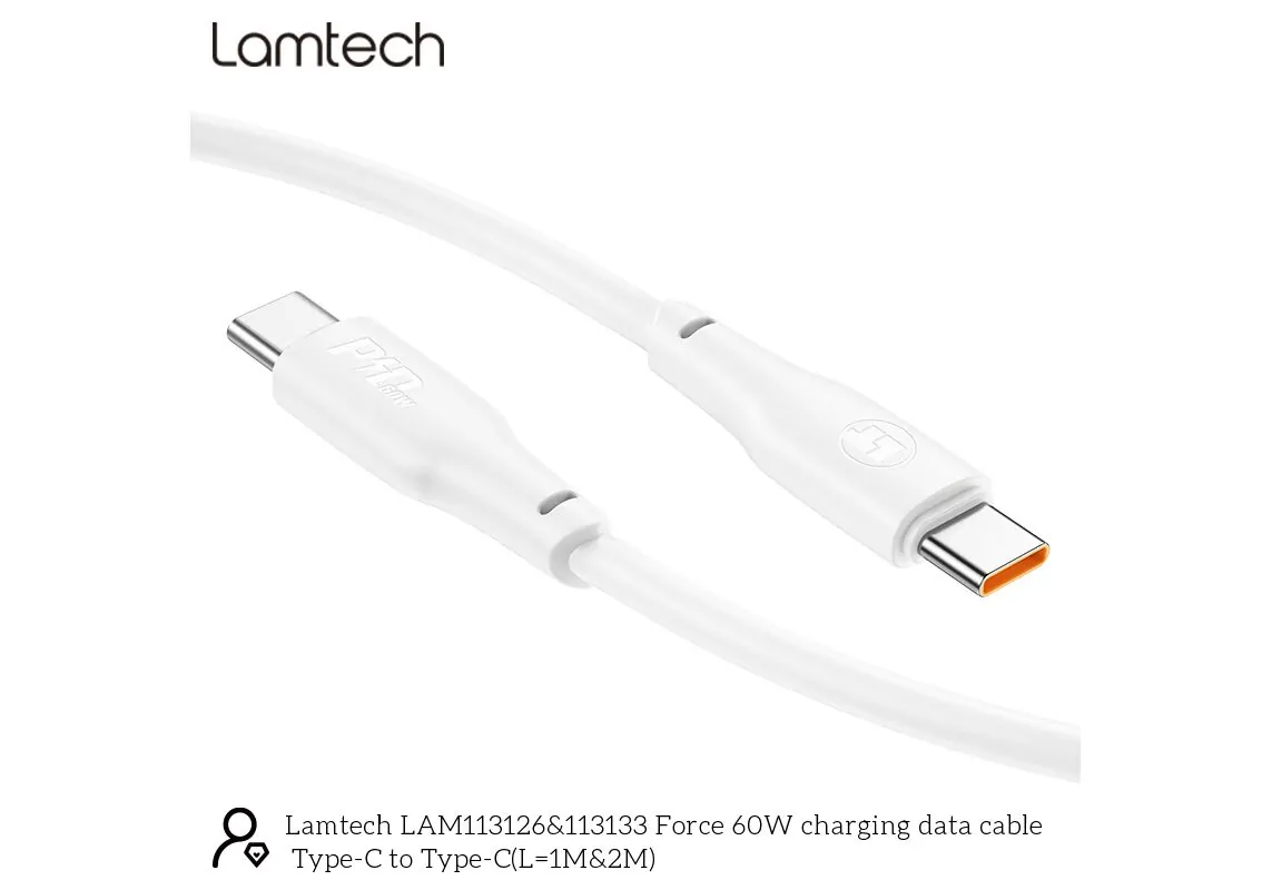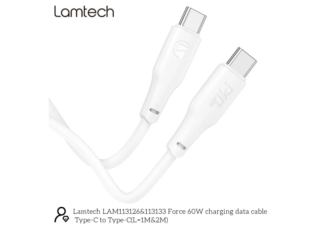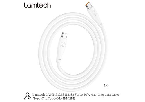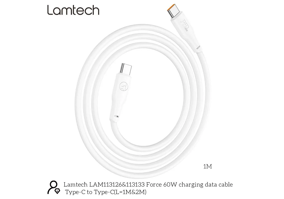 LAMTECH CHARGE AND DATA CABLE TYPE-C TO TYPE-C 60W 1M WHITE