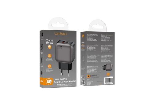 LAMTECH DUAL PORT GaN CHARGER PD30W GREY