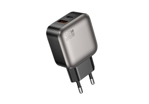 -Διπλός φορτιστής GaN 30W (USB-C + USB-A)