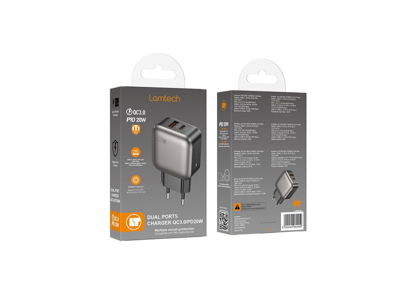 Ο LAMTECH Dual Port QC3.0 Charger PD20W είναι ο ιδανικός φορτιστής για smartphones, tablets, power banks, ακουστικά και ηχεία,