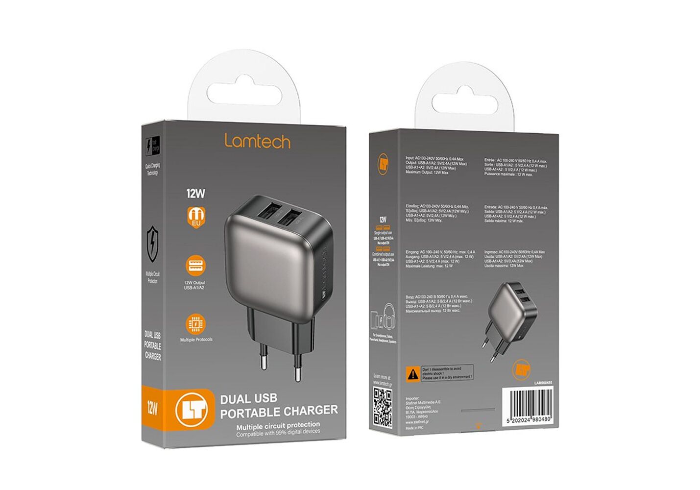Ο LAMTECH Dual USB Portable Charger 12W είναι ένας πρακτικός και αξιόπιστος φορτιστής, ιδανικός για την καθημερινή φόρτιση των συσκευών σας.
