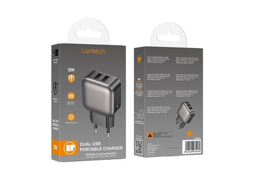 LAMTECH DUAL USB PORTABLE CHARGER 12W GREY