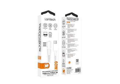 LAMTECH TYPE-C TO TYPE-C 60W DATA & CHARGE CABLE WHITE