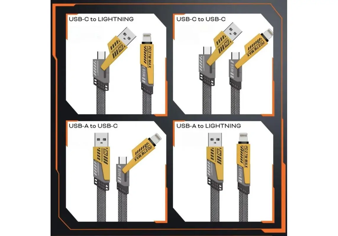 Καλώδιο φόρτισης και μεταφοράς δεδομένων USB-C/USB σε USB-C/Lightning της Powertech.