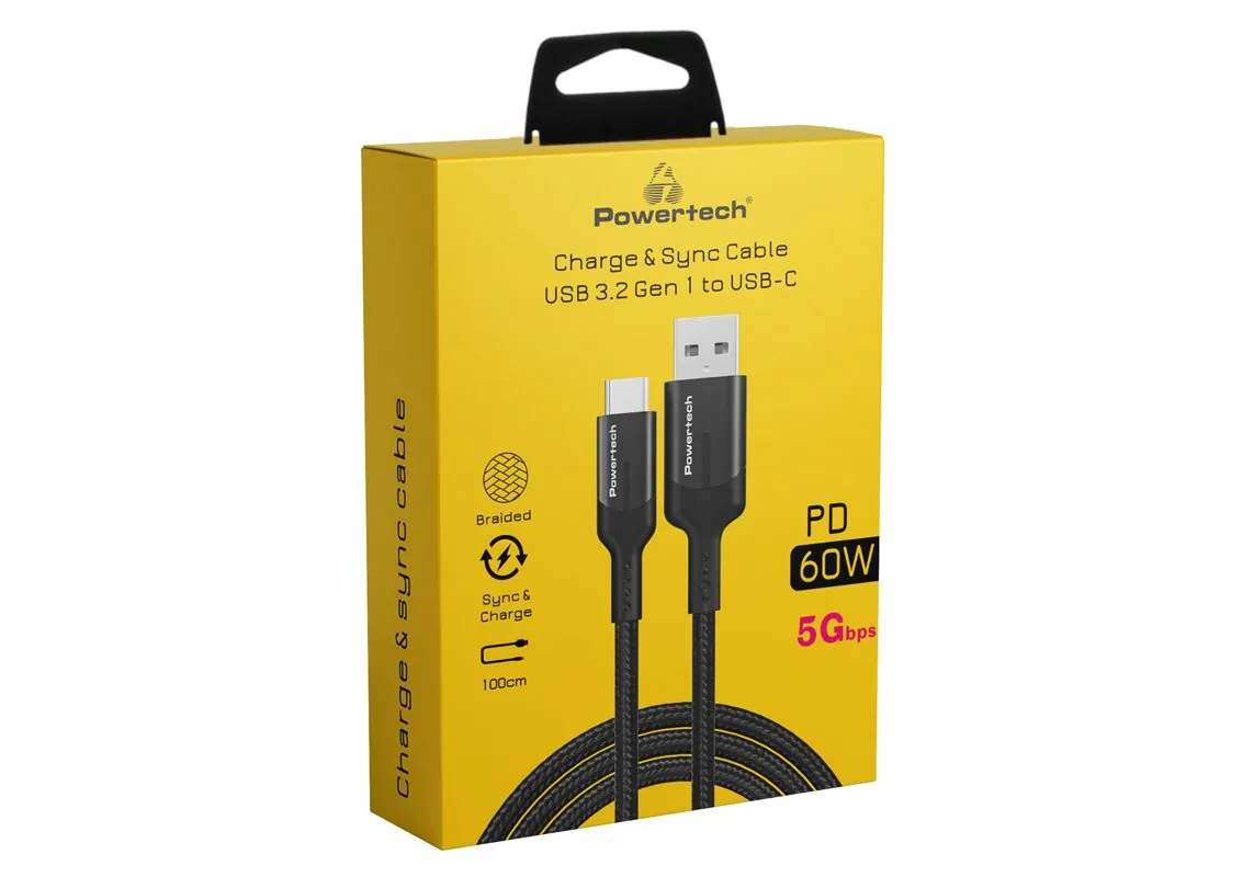 POWERTECH καλώδιο USB σε USB-C PTR-0134 PD 60W, 5Gbps, copper, 1m, μαύρο