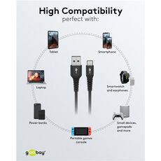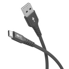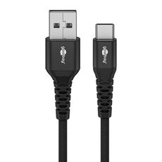 Καλώδιο της εταιρείας Puro με ακροδέκτες USB-C και USB-A για τη φόρτιση του κινητού σου και για συγχρονισμό και μεταφορά δεδομένων μεταξύ κινητού και υπολογιστή.