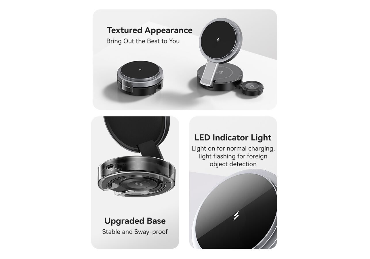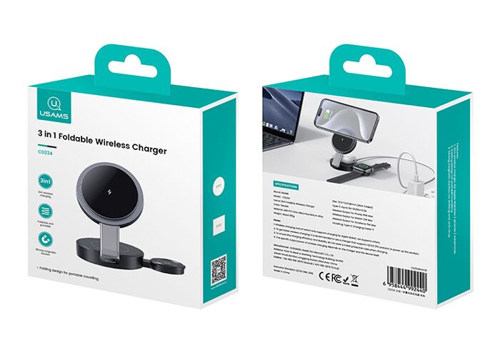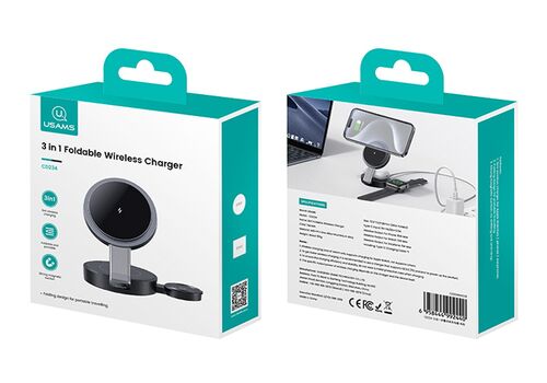USAMS ασύρματος φορτιστής CD234, 3 σε 1, 15W, μαύρος