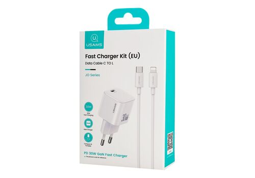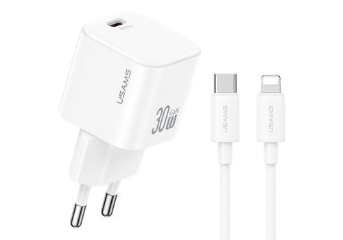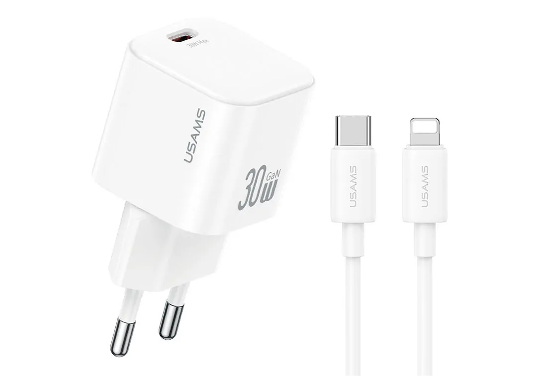 USAMS φορτιστής τοίχου CC262 με καλώδιο Lightning, 30W, GaN, λευκός