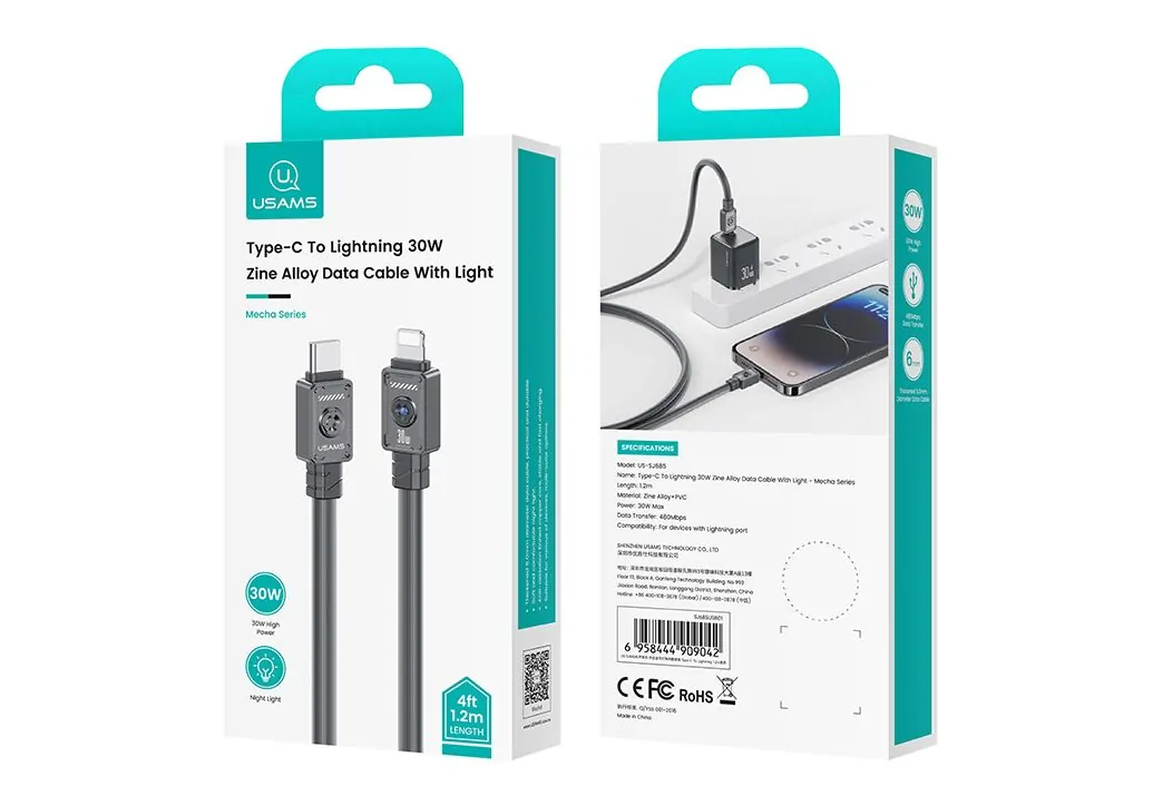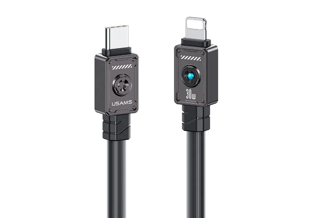 Καλώδιο φόρτισης και μεταφοράς δεδομένων Lightning σε USB-C της Usams. Υποστηρίζει φόρτιση με απόδοση έως 30W και μεταφορά δεδομένων με ταχύτητα έως 480Mbps.