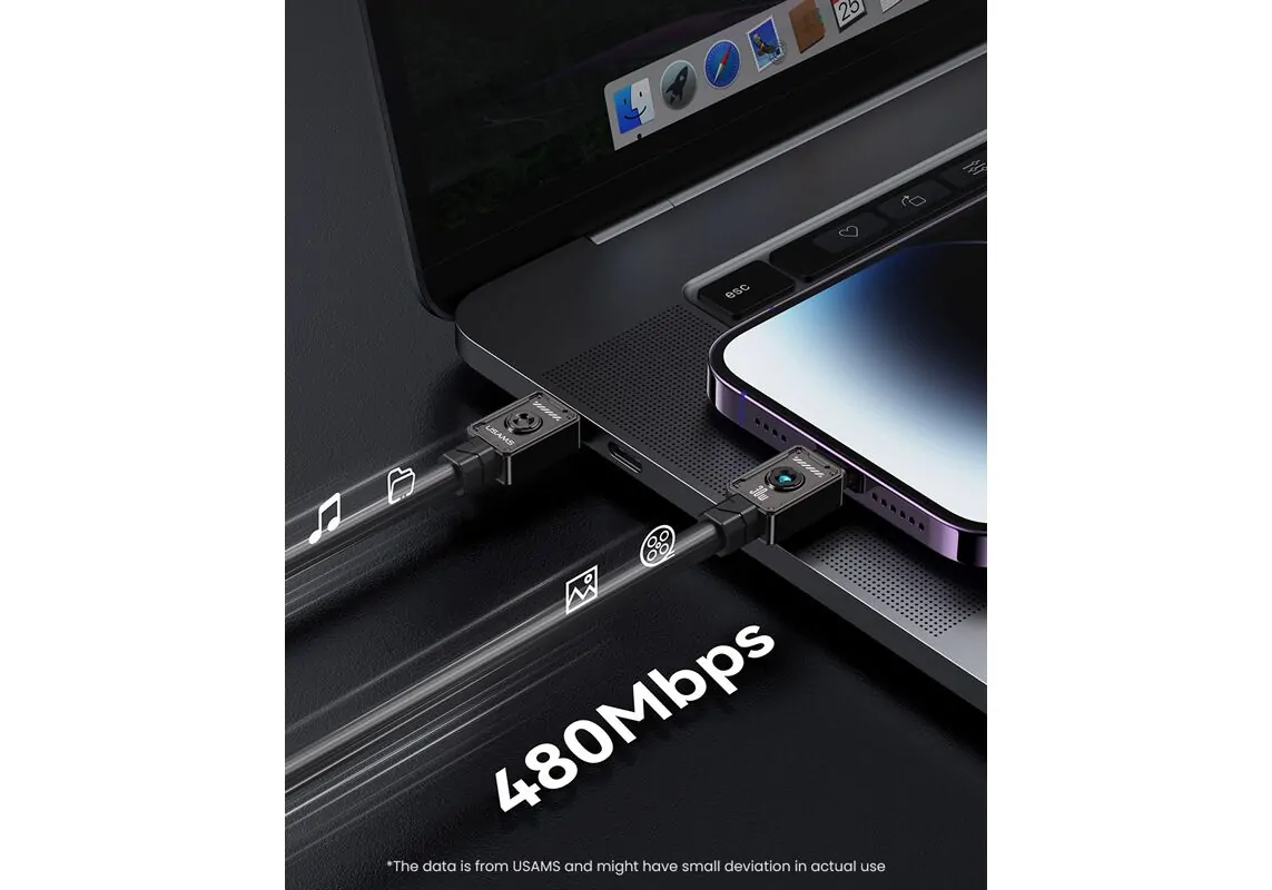 USAMS καλώδιο Lightning σε USB-C US-SJ685, 30W, 480Mbps, 1.2m, μαύρο