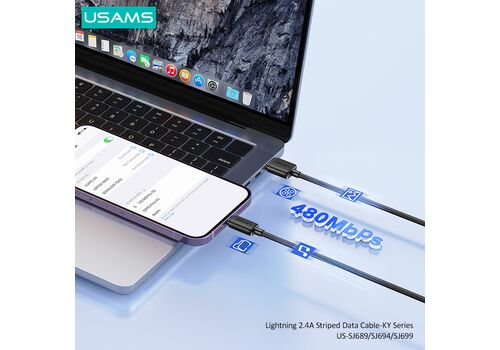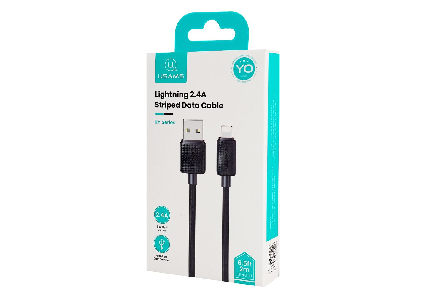 USAMS καλώδιο Lightning σε USB US-SJ694, 2.4A, 480Mbps, 2m, μαύρο