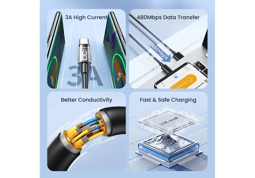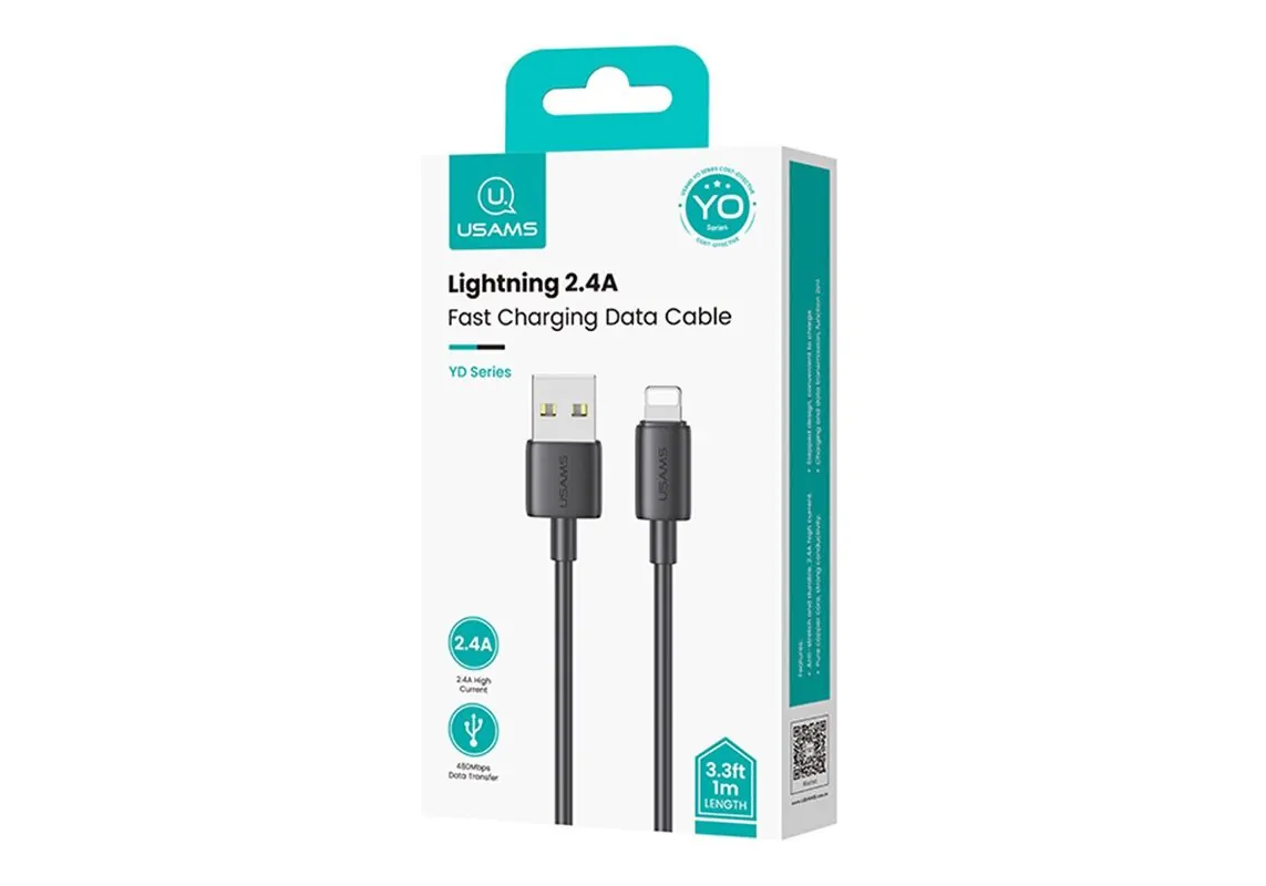 Καλώδιο φόρτισης και μεταφοράς δεδομένων Lightning σε USB της Usams. Υποστηρίζει φόρτιση με απόδοση έως 2.4A και μεταφορά δεδομένων με ταχύτητα έως 480Mbps.