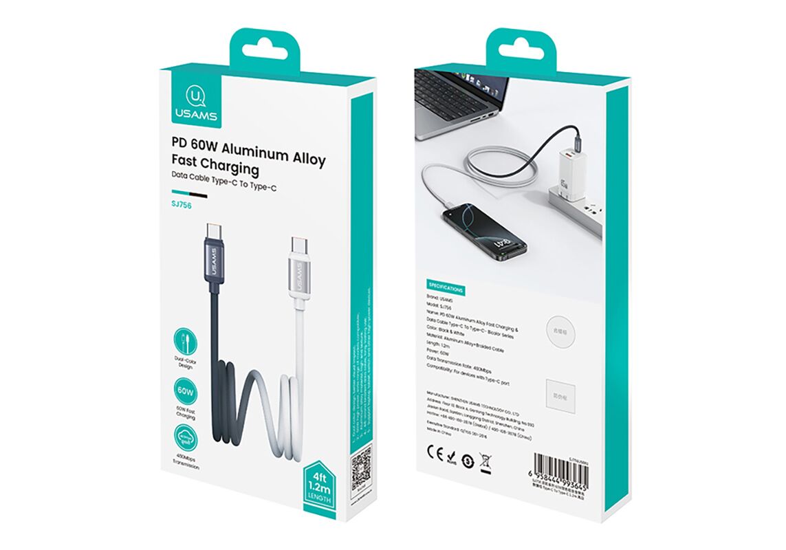 USAMS καλώδιο USB-C SJ756, 60W, 480Mbps, 1.2m, μαύρο/λευκό