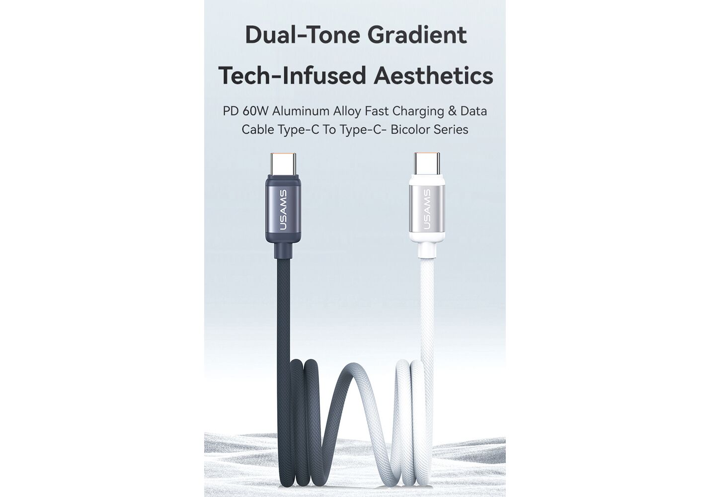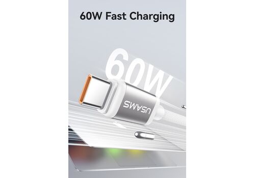 Καλώδιο φόρτισης και μεταφοράς δεδομένων USB-C σε USB-C της Usams. Υποστηρίζει φόρτιση με απόδοση έως 60W και μεταφορά δεδομένων με ταχύτητα έως 480Mbps.
