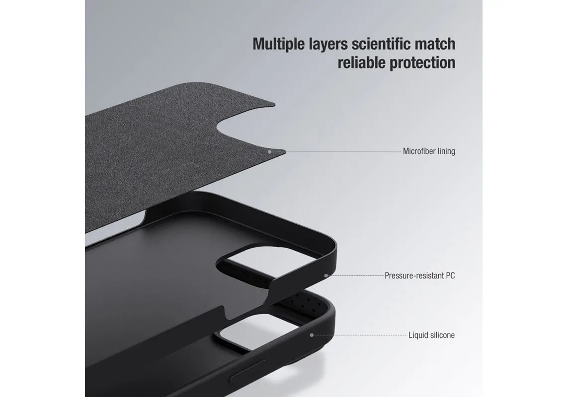 Η θήκη της σειράς CamShield Silky Silicone της Nillkin χαρακτηρίζεται από την ενισχυμένη προστασία που προσφέρει το ανθεκτικό υλικό κατασκευής της και την έξτρα προστασία των καμερών και της ιδιωτικότητας σας, χάρη στο συρόμενο καπάκι της. Η επιφάνεια της είναι αντιολισθητική με απαλή υφή, έχει ενισχυμένα άκρα, δεν χαράσσεται και δεν κάνει δαχτυλιές.