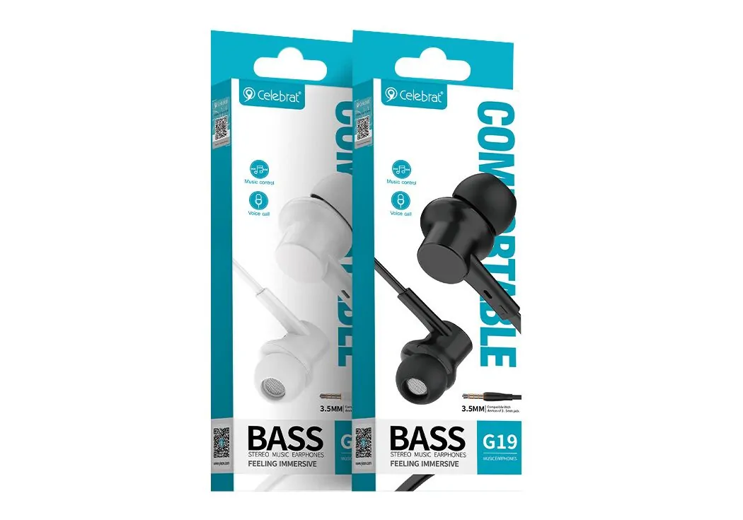 CELEBRAT earphones με μικρόφωνο G19, 3.5mm σύνδεση, Φ10mm, 1.2m, μαύρα