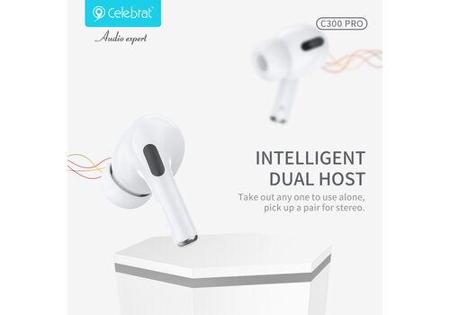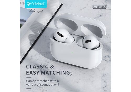 CELEBRAT earphones με θήκη φόρτισης C300 Pro, True Wireless, 13mm, 30/300mAh, λευκά