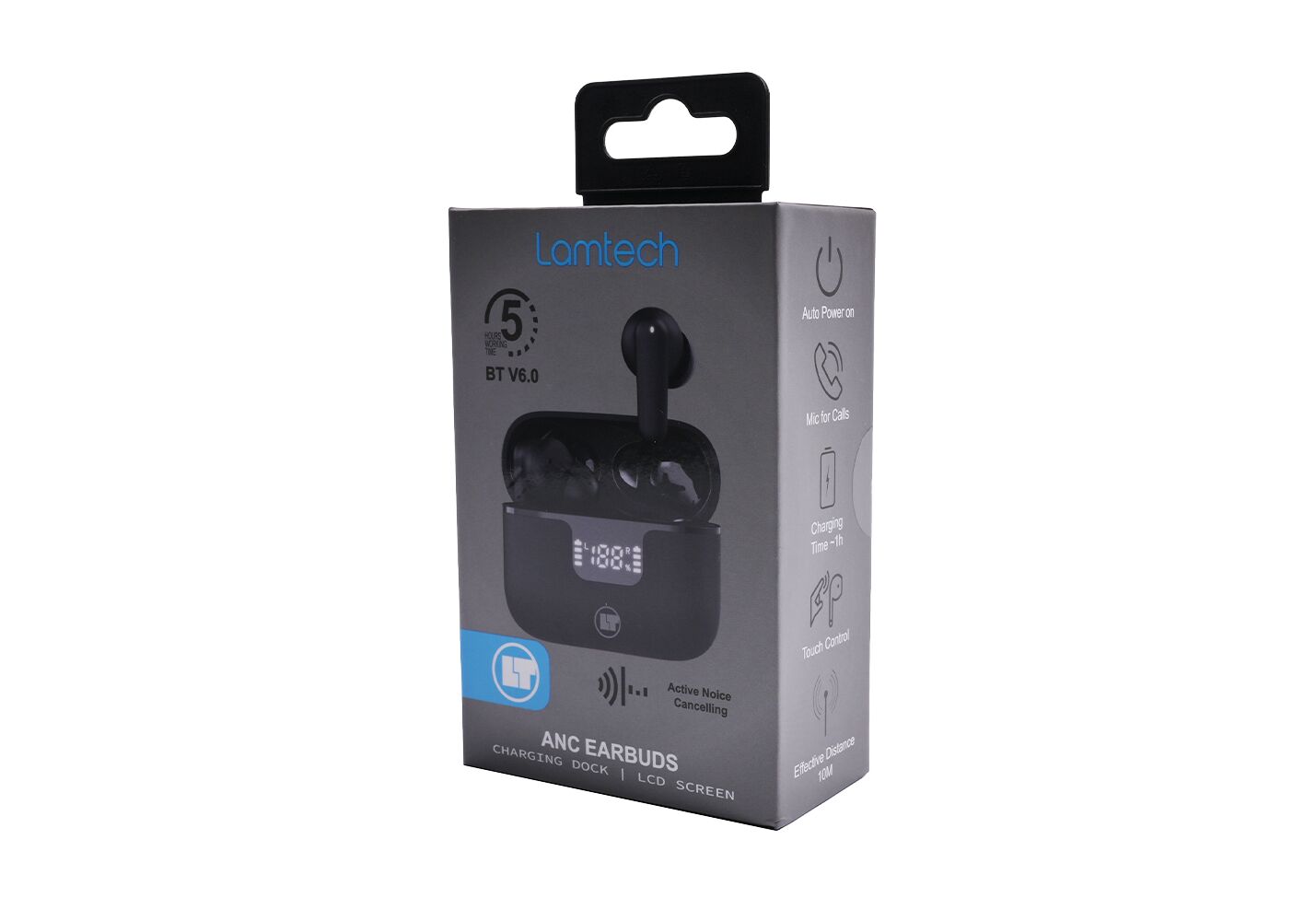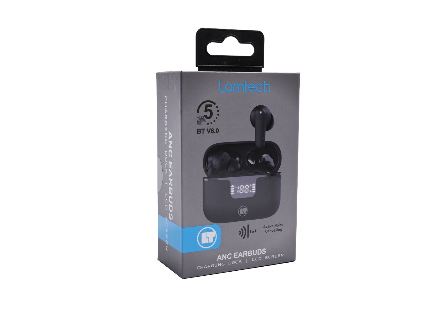 LAMTECH BT v6.0 EARBUDS ANC & 4MIC ENC WITH LED CHARGING CASE BLACK