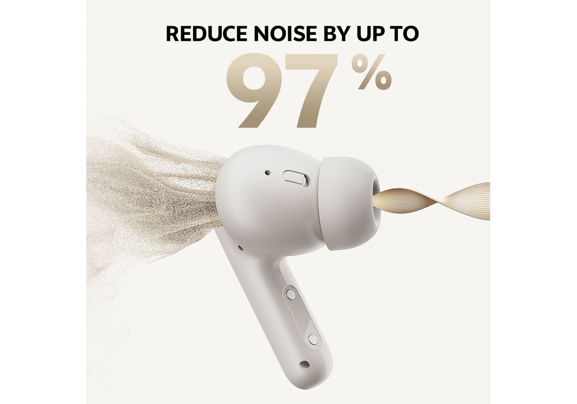 QCY Buds ANC Cream Grey (HT15) - 45db ANC TWS Earbuds 35h 5 mic ENC, ear-canal adaptive tech