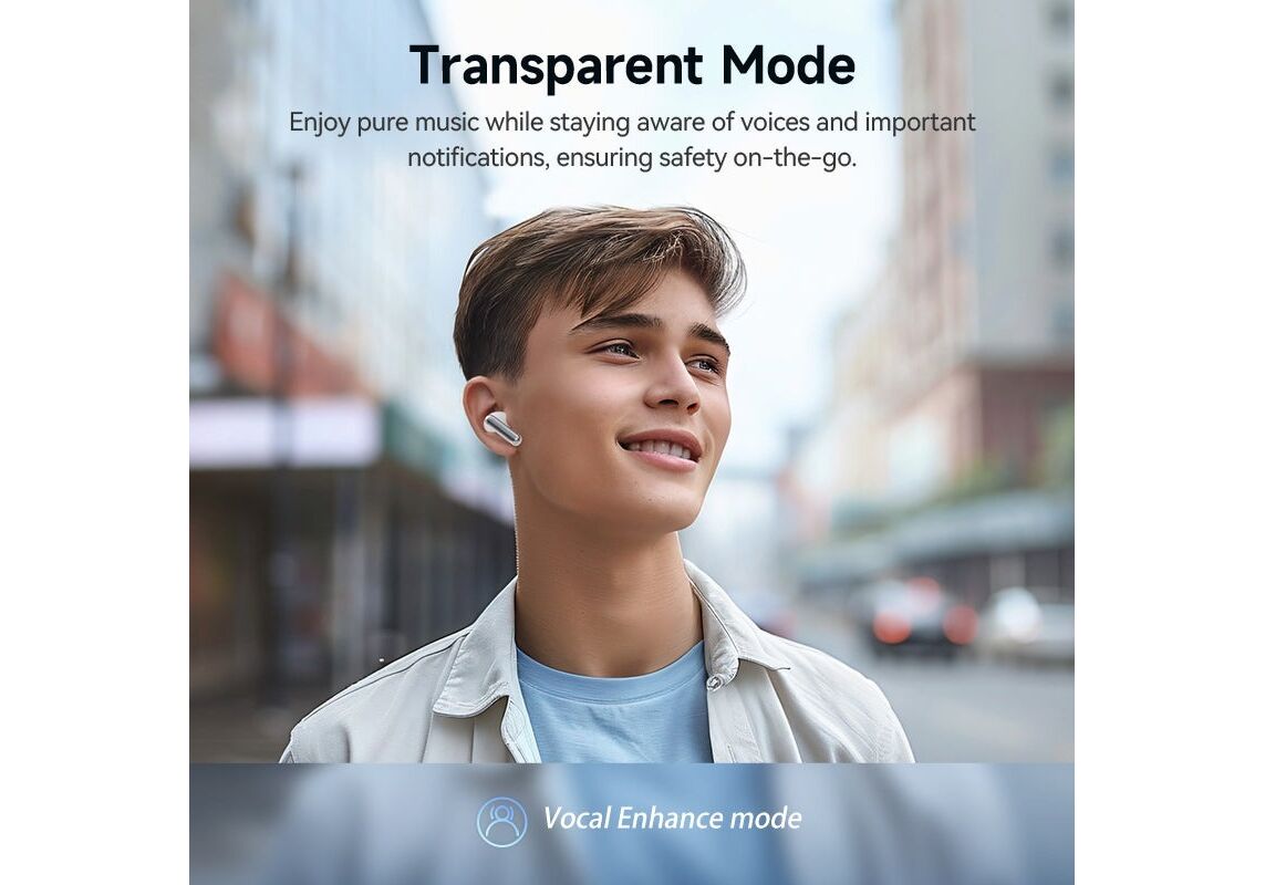 Απλά μεταβείτε στη λειτουργία Transparent Mode για να ακούτε τον κόσμο γύρω σας όταν το χρειάζεστε, χωρίς να αφαιρείτε τα ακουστικά σας, διευκολύνοντας την επικοινωνία με τους γύρω σας και παρέχοντας ασφάλεια για τις υπαίθριες δραστηριότητές σας.