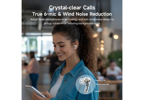 Το βάθος ακύρωσης θορύβου φτάνει τα 45 dB, ώστε να μπορείτε να απολαμβάνετε τη μουσική ή τη συνομιλία σας χωρίς καμία διακοπή, είτε βρίσκεστε στο μετρό είτε σε έναν θορυβώδη δρόμο.