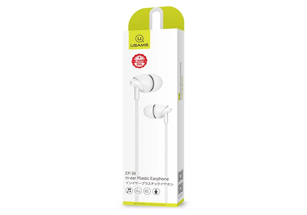 USAMS earphones με μικρόφωνο EP-39, 3.5mm σύνδεση, Φ10mm, 1.2m, λευκά