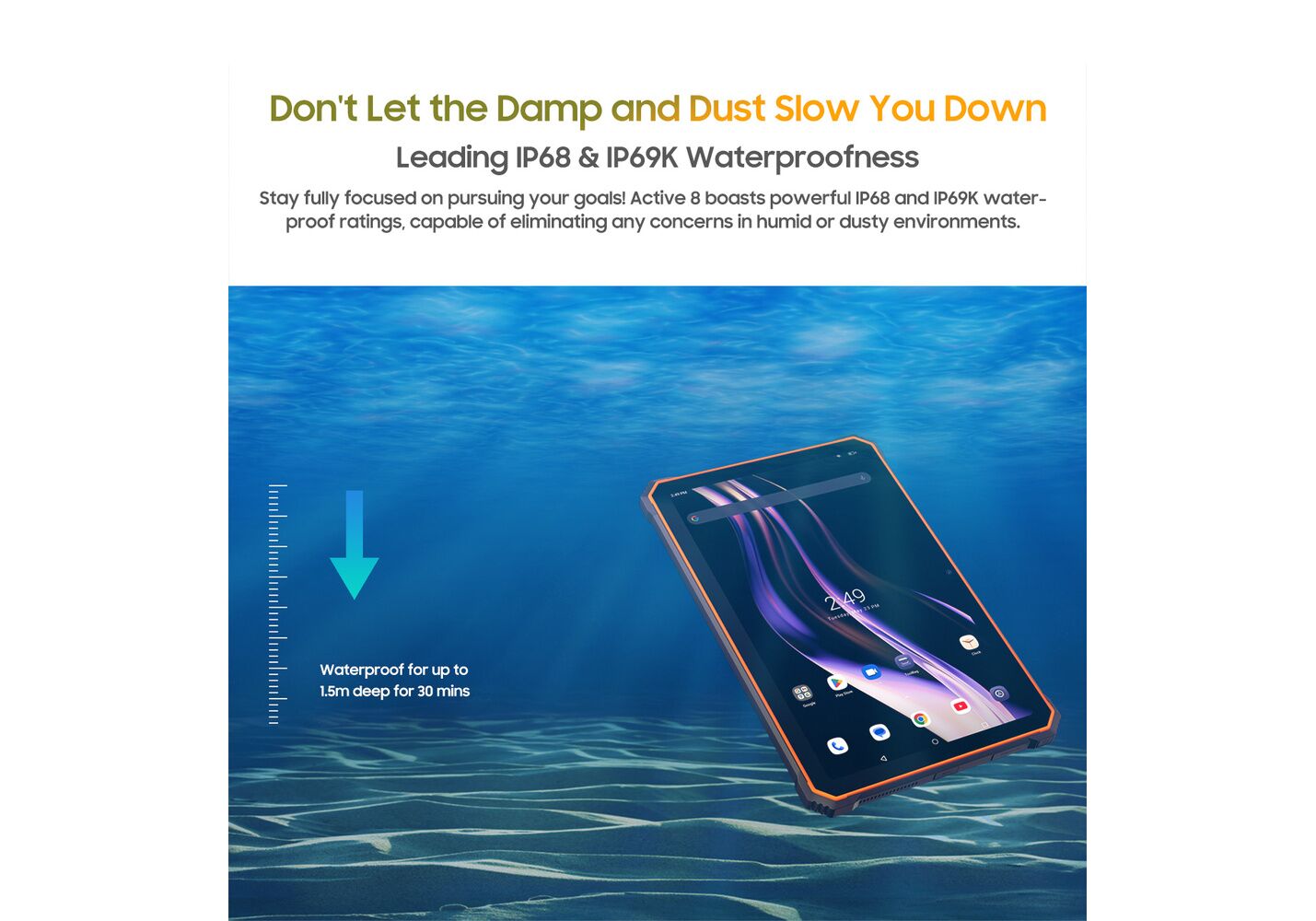 Είτε εξερευνάτε την υπέροχη ύπαιθρο είτε εργάζεστε σε σκληρά περιβάλλοντα, το BLACKVIEW Active 8 Rugged Tablet είναι ο αξιόπιστος σύντροφός σας. Με τη στιβαρή σχεδίασή του, τις ισχυρές επιδόσεις και τις προηγμένες δυνατότητες, είναι έτοιμο να αντιμετωπίσει οποιαδήποτε περιπέτεια μαζί σας. Επιλέξτε ανθεκτικότητα, επιλέξτε απόδοση, επιλέξτε το BLACKVIEW Active 8 Rugged Tablet.