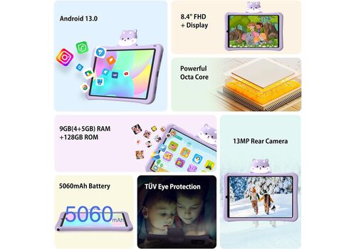 DOOGEE tablet T20 Mini Kids, 8.4", 4/128GB, 4G, Android 13, 5060mAh, μωβ