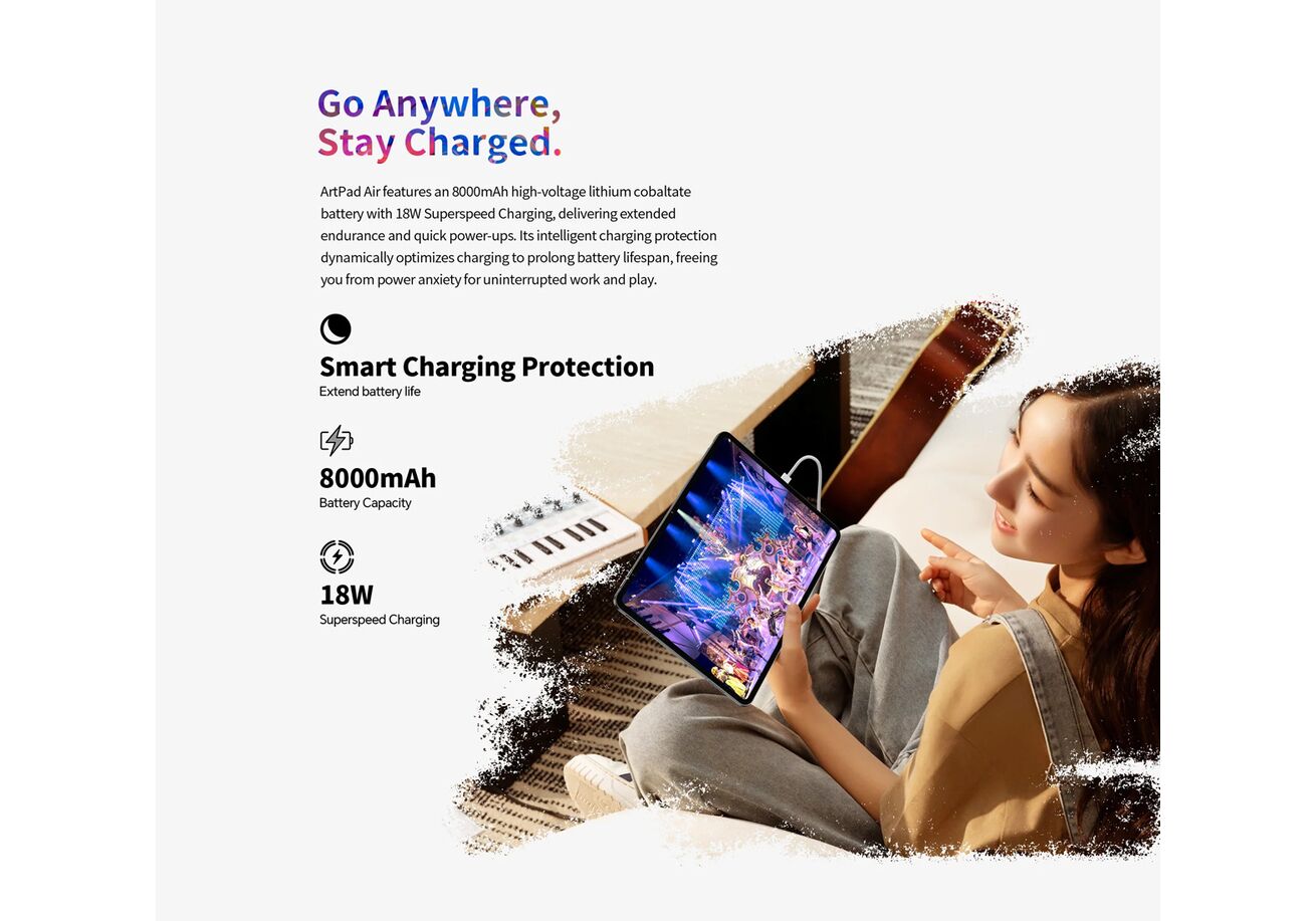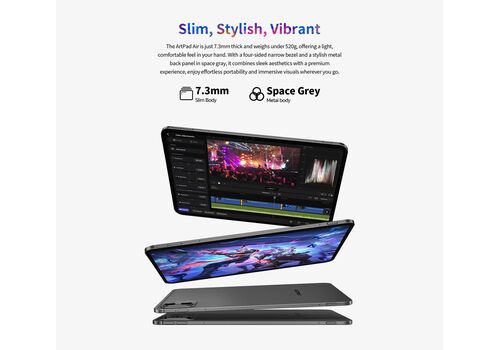 Με ελαφρύ και λεπτό μεταλλικό σώμα, το tablet ArtPad Air είναι άνετο στη χρήση και εύκολο να μεταφέρεται παντού.