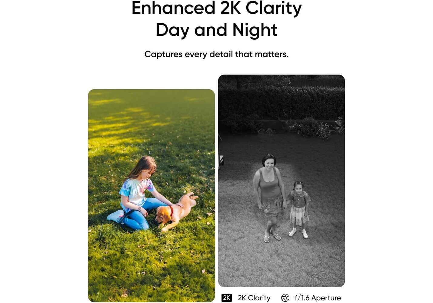 Enhanced 2K Clarity Day and Night: Experience crystal-clear 2K clarity day and night, capturing every detail that matters. With an f/1.6 aperture and 2K Clarity, our product always ensures superior image quality.