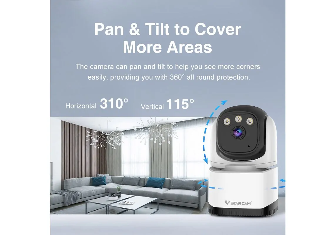 Η smart κάμερα CS995 της VSTARCAM, καταγράφει κάθε κίνηση σε καθαρή, υψηλής ευκρίνειας ανάλυση. Ρυθμίζεται εύκολα και ελέγχεται από smartphone με την εφαρμογή O-KAM Pro μέσω ασύρματης WiFi σύνδεσης. Μπορεί να ανιχνεύσει κινήσεις, στέλνοντας ειδοποιήσεις στο smartphone σας κάθε φορά που ανιχνεύεται κίνηση και εξοπλίζεται με υψηλής ποιότητας μικρόφωνο που επιτρέπει την αμφίδρομη μεταφορά φωνής και ήχου. Υποστηρίζει PTZ λειτουργία που σας επιτρέπει την οριζόντια και κάθετη μετακίνηση της κάμερας μέσω της εφαρμογής, για την εύκολη προσαρμογή της στην ιδανική γωνία.
