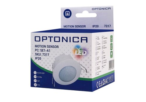 Αισθητήρας κίνησης υπερύθρων της Optonica, ειδικά σχεδιασμένος για χρήση με λάμπες LED. Εντοπίζει κίνηση με ανίχνευση σε γωνία 360° και εμβέλεια έως 6m. Είναι κατασκευασμένος από ανθεκτικό πλαστικό και αλουμίνιο με προστασία IP20.